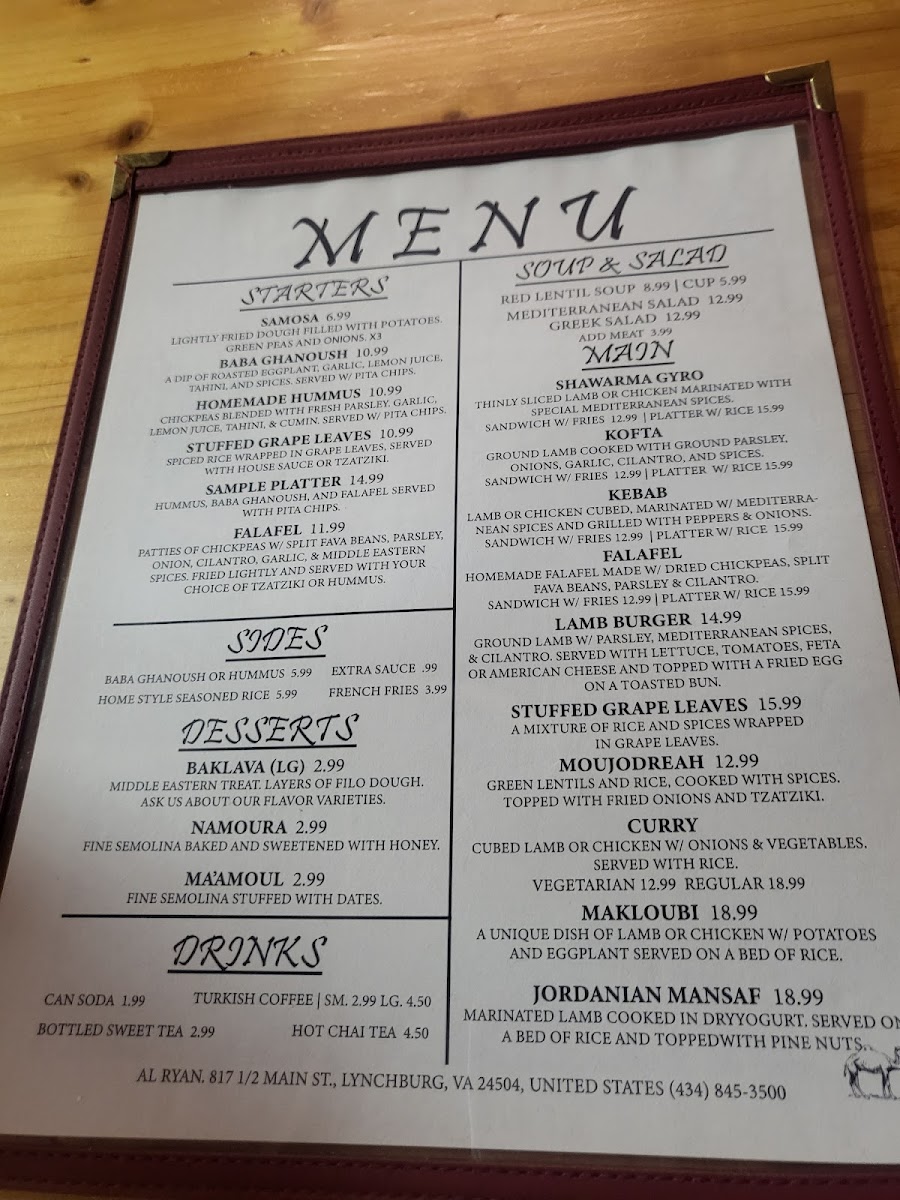 Welcome to Al Ryan, a charming Mediterranean eatery nestled in Lynchburg, VA. This delightful corner spot is known for its fresh and authentic dishes that capture the essence of Mediterranean flavors. With a focus on health-conscious and sustainable ingredients, Al Ryan offers a menu that caters to diverse palates.